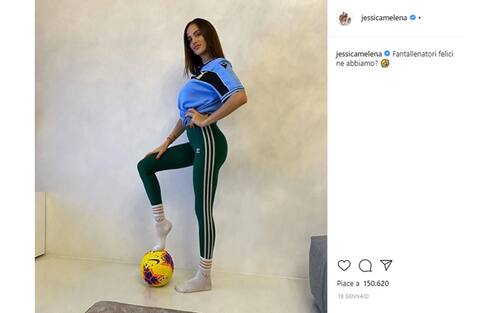 La "bomber" Jessica in completo laziale: "Fantallenatori felici ne abbiamo?" (foto Instagram @jessicamelena)