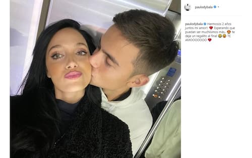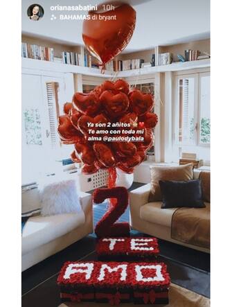 Il campione della Juventus e la bellissima modella e cantante argentina festeggiano anche sui social un giorno molto importante per loro, l'anniversario di fidanzamento. "Due anni bellissimi amore mio - la dedica di Paulo - spero che saranno molti di più". Per chiudere in bellezza una "cascata" di palloncini e rose rosse