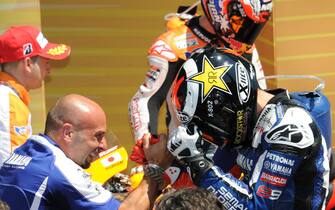 2008 - Rossi sul suo primo posto al Mugello in compagnia di Stoner, secondo, e Pedrosa, terzo -