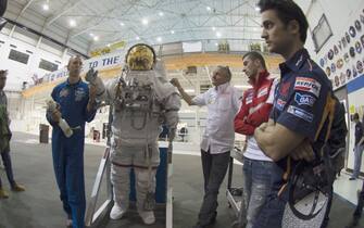 Sarà come andare a 300 all'ora sulle due ruote? Dani Pedrosa e Andrea Iannone professione piloti, hanno vestito per un giorno i panni di astronauti. Eccoli nella cabina dello shuttle, dove gli astronauti si allenano al simulatore -