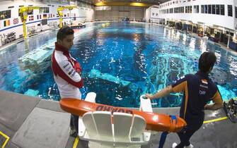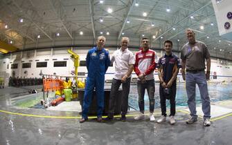 Eccoli in visita alla piscina che gli astronauti utilizzano per allenarsi a stare in assenza di gravità -