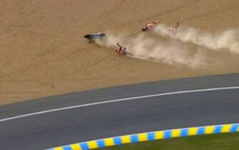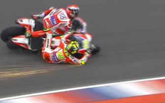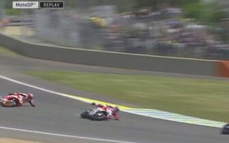 Ecco il momento dell'impatto tra le due Ducati, che stavano battagliando per il secondo posto (Foto Twitter) -
