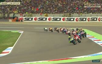 La leadership di Rossi dura appena due giri: uno scatenato Hernandez fa segnare il giro più veloce e passa il pesarese della Yamaha (Foto Twitter) -
