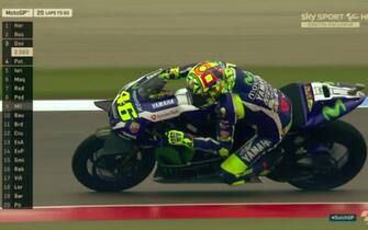 La partenza ha visto un Rossi portarsi subito in prima posizione, sfruttando la grande capacità del Dottore di guidare sul bagnato (Foto Twitter) -