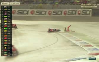 Nel frattempo, Jorge Lorenzo scivola nelle retrovie, precipitando sino al 15esimo posto: il campione del mondo è allergico all'asfalto bagnato (Foto Twitter) -