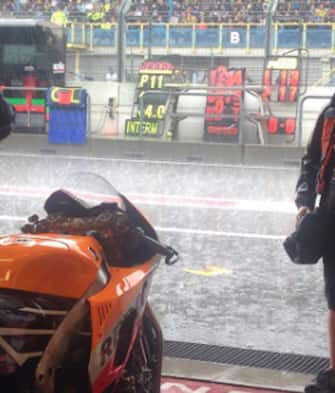 Una vista dal box di Marc Marquez, che ben dimostra le proibitive condizioni della pista (Foto Twitter) -