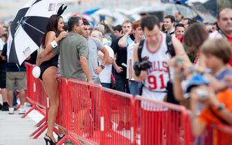 I tifosi accorrono numerosi per vedere le derapate di Marquez e i sorpassi di Rossi. Ma non disdegnano un selfie con le ragazze del paddock -