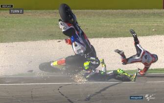 LA FOTOGALLERY. La terza sessione di prove libere della MotoGP sul circuito di Alcaniz è stata caratterizzata da molte cadute, alcune davvero spettacolari. Rossi, Marquez, Petrucci e Hayden tra i piloti coinvolti