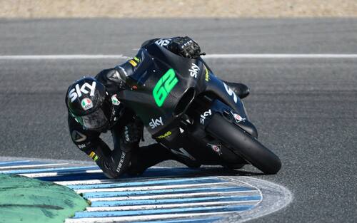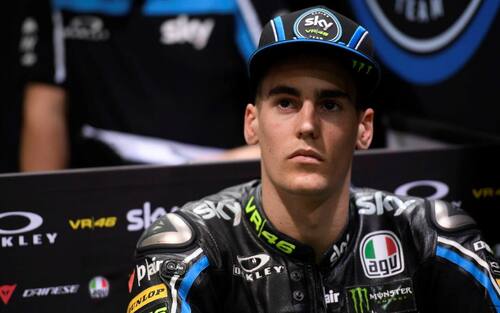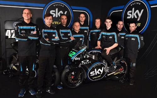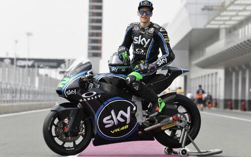 Lo scorso febbraio ecco la presentazione ufficiale dello Sky Racing Team VR46 con il giovane pilota santarcangiolese che indossa i nuovi colori -