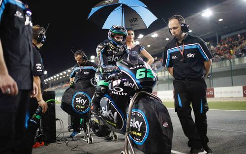 Losail ha rappresentato per Stefano il debutto assoluto in Moto2: lo vediamo in questo scatto concentrato, pronto per il via della gara -