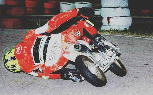 Stefano Manzi si è sempre fatto notare per la sua esuberanza in pista, correndo sempre al limite: anche con una minimoto piegando... col casco a terra! -