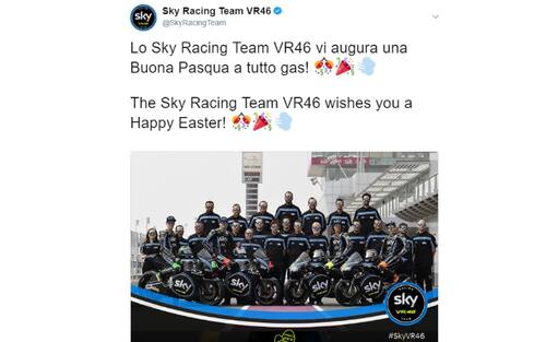 Weekend di Pasqua, non potevano mancare gli auguri da parte di tutta la squadra rivolti a tutti i tifosi e sostenitori del progetto Sky-VR46 -