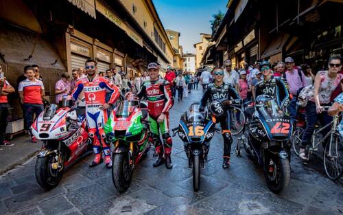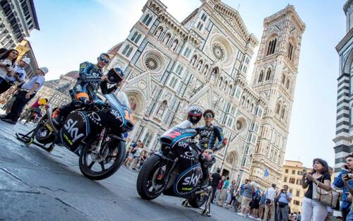 LA FOTOGALLERY. I due piloti dello Sky Racing Team VR46 protagonisti del Media Event organizzato da Dorna alla vigilia del Gran Premio d'Italia al Mugello: una sfilata, con le rispettive moto, dal Ponte Vecchio al Duomo passando per Piazza della Signoria