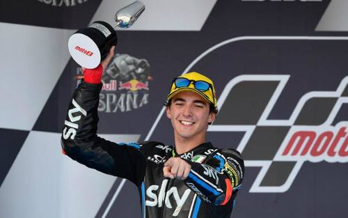Jerez, Le Mans, Sachsenring: alla sua stagione d'esordio in Moto2 con lo Sky Racing Team VR46 a sua volta al debutto, Pecco Bagnaia è già salito sul podio in 3 distinte occasioni -