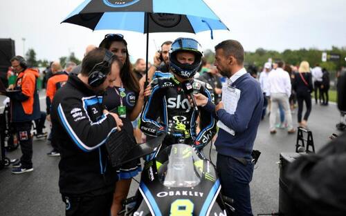 La gara della classe Moto2 viene sospesa dopo 8 giri con bandiera rossa per la comparsa della pioggia: in quel momento Francesco Bagnaia era quarto assoluto... -
