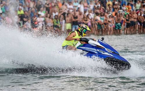 LA FOTOGALLERY. Andrea Migno, Nicolò Bulega, Francesco Bagnaia e Stefano Manzi protagonisti della "MotoGP Aqua Battle", insolita gara in sella a jet sky tenutasi alla vigilia del Gran Premio di San Marino e della Riviera di Rimini