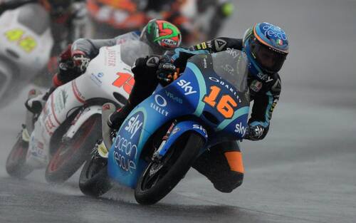 Condizioni difficili anche nella classe Moto2: Francesco Bagnaia parte dalla seconda fila e si difende bene nelle prime fasi della contesa -