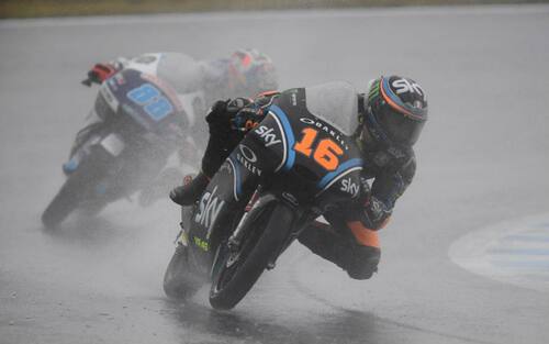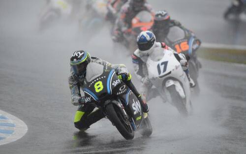 Sotto la pioggia Bulega incontra in gara più difficoltà del previsto e si ritrova, al termine del primo giro, già fuori dalla top-10 -