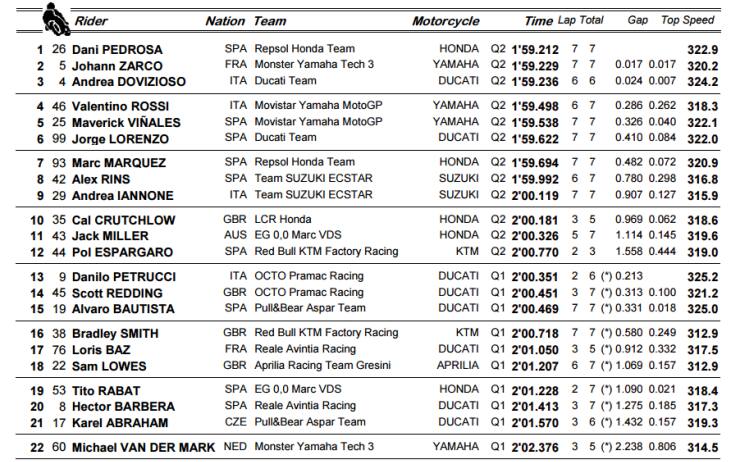 MotoGP, qualifiche GP Malesia - la griglia di partenza