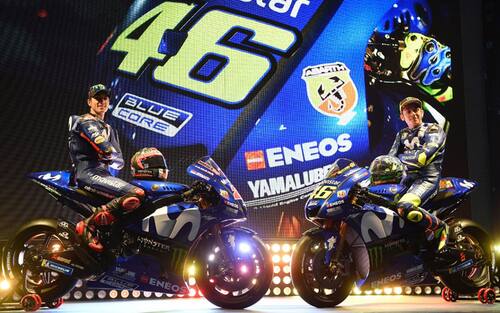 Svelata a Madrid la moto di Rossi e Vinales, che ha annunciato il prolungamento del contratto per altri due anni. Qui le immagini ufficiali e la livrea della nuova moto. Poi si comincerà a girare in pista a Sepang. RIVIVI QUI LA PRESENTAZIONE