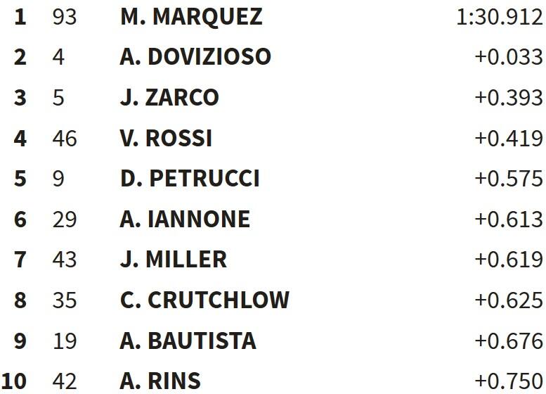 Notizie positive da Honda e Ducati per i tempi sia sul girto secco sia come tenuta gomme. Problemi maggiori per la Yamaha, che soffre ancora di spinning.