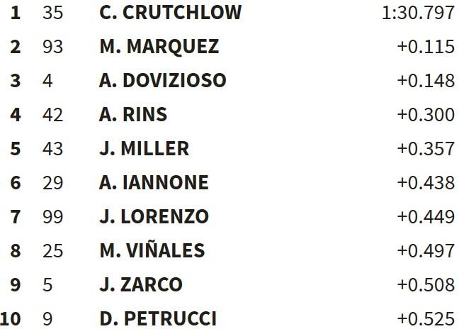 10.45 Cambia la top ten: balzo in avanti di Crutchlow