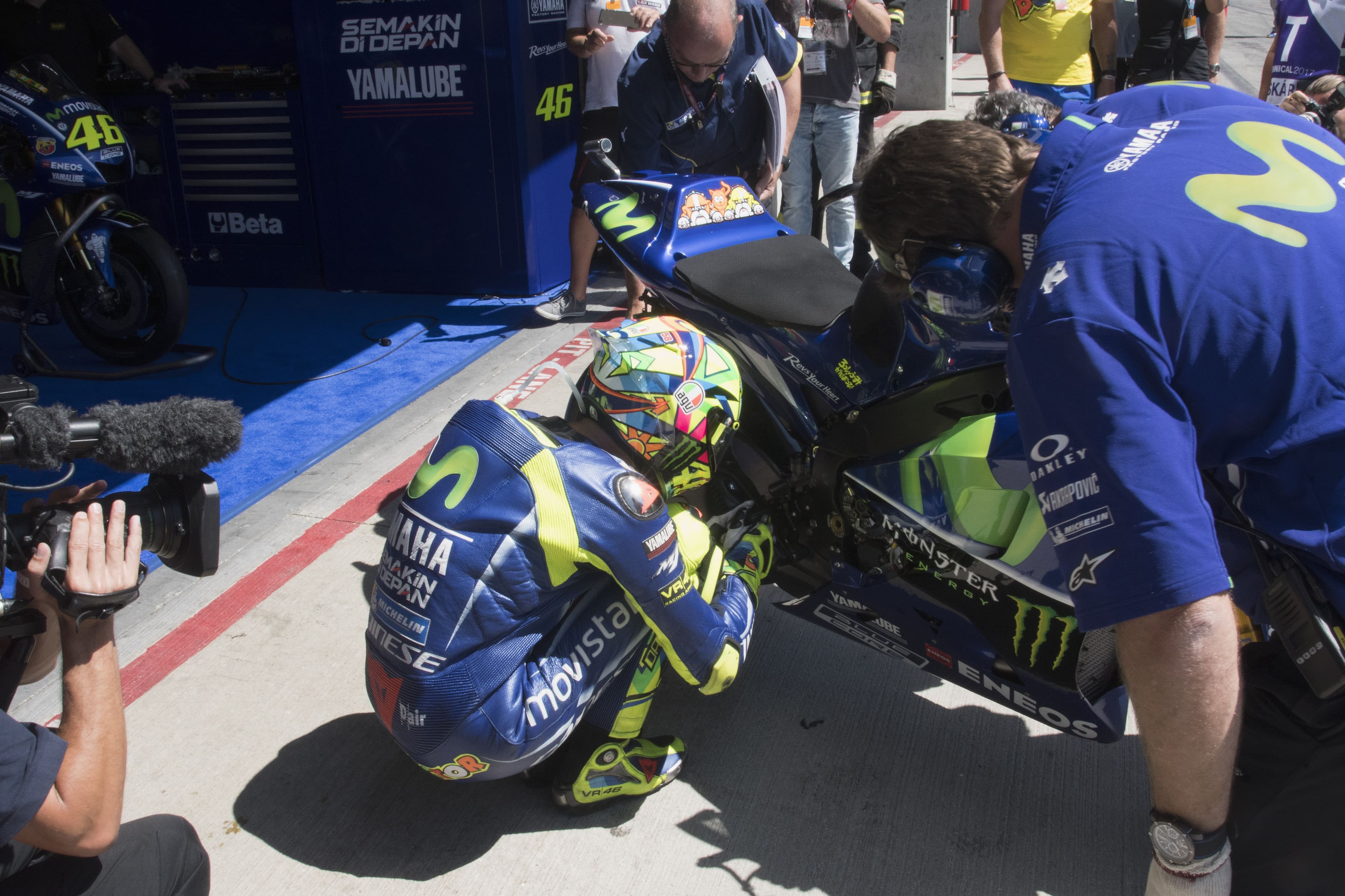 "Prima eravamo nelle mani di persone che di Valentino vedevano solo il lato commerciale senza metterci un filo di cuore. Mi ricordo che in Turchia, nel 2006, litigai con il manager di allora e da lì cominciai a far aprire gli occhi a Vale. Nel 2008 eravamo in macchina, dall’hotel andavamo al circuito, io guidavo e ripetevo: “Vale oggi tiriamo fuori tutto quello che abbiamo, non lo far stare mai davanti, perché se gli metti sempre le ruote davanti va in ca....”. E lui: “Come faccio a stargli davanti?”. “Lascia i freni, entra dentro, lascia i freni, entra dentro. Tramortiscilo, per favore”. Ho continuato a rompergli i c....i tutto il viaggio, che lui a un certo punto mi ha detto: “Ok li mollo sti freni, basta però”. Però io non ho smesso, anche in griglia glielo dicevo, gli facevo: “Te lo ricordi? Te lo ricordi?”. Lui non rispondeva, ma ho ancora in mente questi occhi che non vedevano l’ora di partire, che mi emozionavano, perché avevo capito che recepiva tutto e sapevo che ce l’avrebbe fatta. Una volta nel 1998 Aprilia aveva organizzato uno shooting di due giorni. Vale non aveva ancora la patente ed eravamo andati su con la Bravo di mia mamma, a Venezia o quelle parti là. Primo giorno ok, secondo giorno ok, e poi dicono: "Ah c’è da fare anche domani mattina". Ok. Dopo la mattina del terzo giorno ci dicono che dovevamo trasferirci da un’altra parte per finire le ultime cose nel pomeriggio. Ci accodiamo alle altre macchine, a un certo punto la prima della fila mette la freccia, tutti si preparano a girare e Vale mi fa: "Te vai dritto". C’era anche Capirossi, c’erano i vertici Aprilia, potentissimi. Vale aveva vinto un solo Mondiale, non è che poteva permettersi di comportarsi come gli pareva. Gli altri vanno a sinistra e noi no. Sempre Vale mi fa: "Adesso scala una marcia, dai il gas e spegni i cellulari". Pernat, allora il team manager Aprilia, mi chiamò la sera inca...., non avevano potuto finire il lavoro per colpa nostra. Vale è rimasto uguale: per fargli fare questo tipo di attività devi essere preciso. Se gli dici che un’intervista dura mezzora, deve durare mezzora, se no si infastidisce. Facciamo le stesse cose dal 1996, ci devono essere solo determinate persone. Nelle gare europee io, Carlo, Vale, Albi e Max, che mi ha sostituito come assistente. Fuori Europa io, Vale e Max. Basta. Lì non entra più nessuno. Vale dice: "Chiudete il bar", che è l’ufficio dove si cambia. Da lì non si scherza più. Lì Vale comincia a pensare a quello che c’è da pensare, ed è un modo per iniziare la concentrazione e dire: "Oh, tra mezzora si parte". I passaggi sono questi: «Motorhome. Io arrivo e Max già è lì. Max fa un check se è tutto ok, stivali, guanti, sottotuta. Poi ci vado io e faccio un’ulteriore verifica. Poi arrivano Vale, Carlo e Albi. Albi arriva a piedi, Carlo e Vale con lo scooter. Una volta tutti, chiudiamo il bar. Se uno dei nostri ha fatto bene ascoltiamo le interviste della Moto2, poi basta". La tele non parla più, parla Vasco. "Vale accende la musica. O un Vasco d’annata o l’album Nessun Pericolo per te".