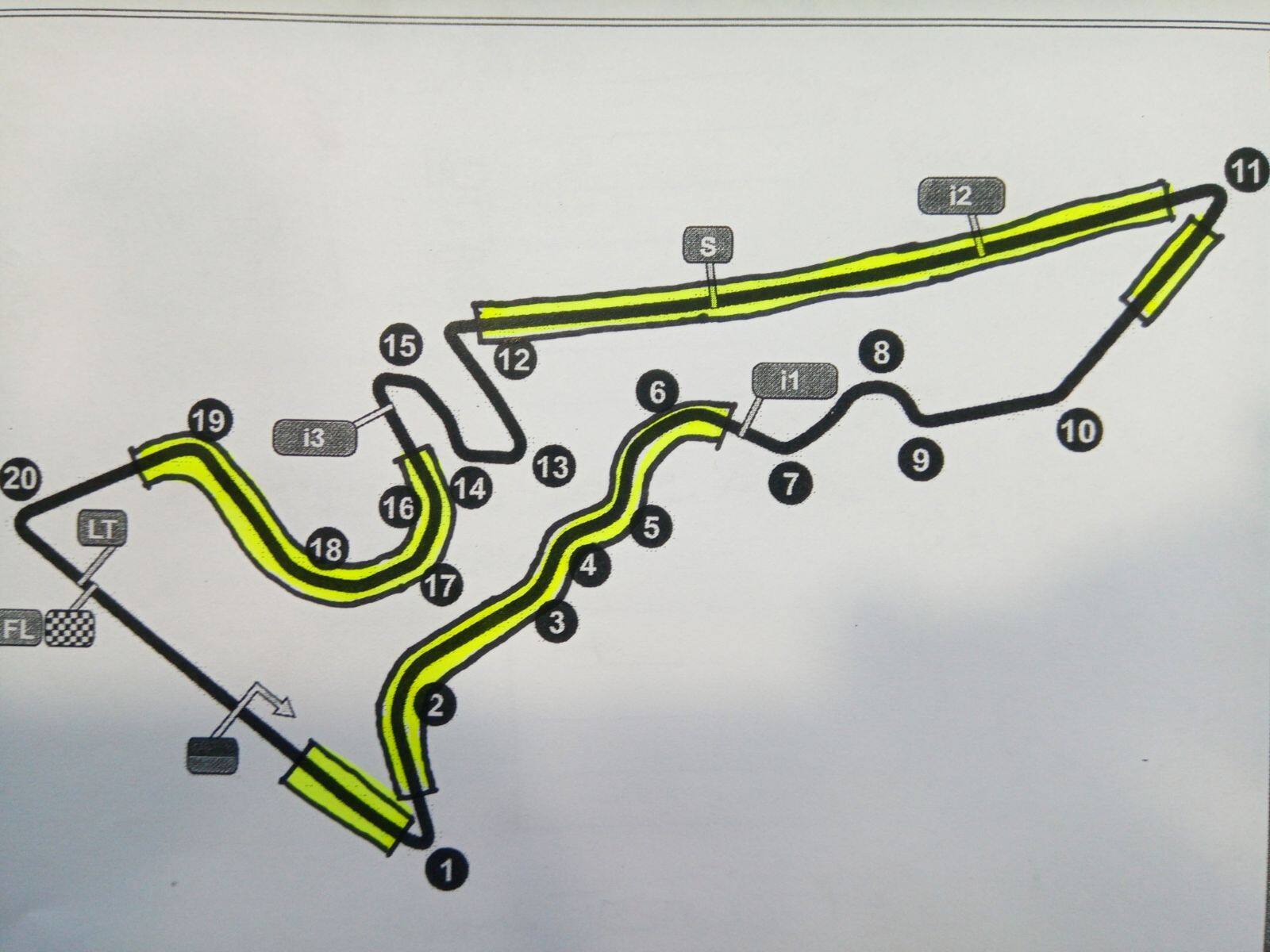 IL CIRCUITO DI AUSTIN: IN GIALLO LE PARTI FRESATE