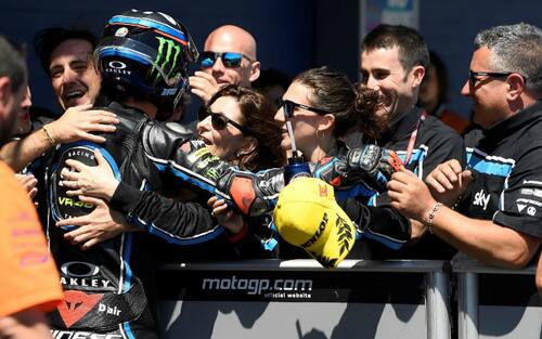 All'arrivo al Parc Ferme è festa grande per Bagnaia e lo Sky Racing Team VR46 -
