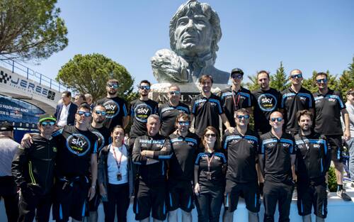 Il weekend di Jerez si è aperto giovedì con la cerimonia-tributo ad Angel Nieto, con il tracciato andaluso ora intitolato proprio al 12+1 volte Campione del Mondo: presente al completo lo Sky Racing Team VR46 per ricordare il campionissimo delle due ruote -