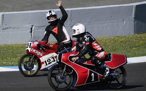 Prima della gara Moto3, Pablo e Gelete Nieto sono saliti in sella rispettivamente alle Derbi e Garelli portate in trionfo nel Motomondiale da papà Angel -