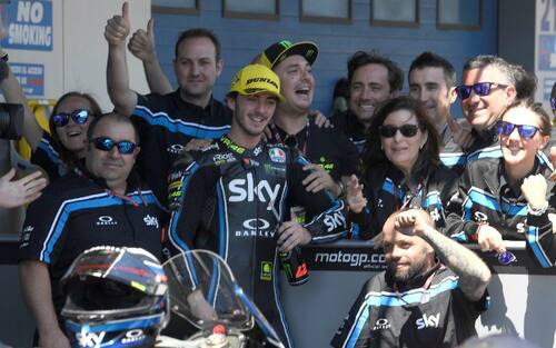 Coinquilini al top nel Mondiale Moto2: vince Lorenzo Baldassarri, Francesco Bagnaia terzo è al comando della classifica di campionato -