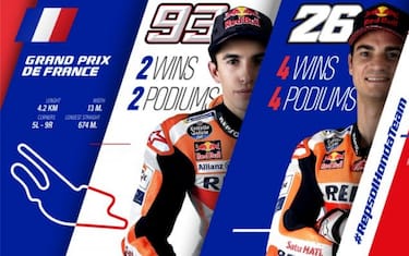 Marc Marquez: "A Le Mans bisognerà lavorare molto e fare tutto al meglio che possiamo per sfruttare questo buon momento. In passato siamo stati all’altezza della vittoria o del podio in varie occasioni ed altre volte abbiamo faticato molto ma, come dico spesso, ogni stagione è diversa. Sicuramente ci sono dei punti di domanda importanti sul meteo, sugli pneumatici e sul set-up delle moto ma la nostra mentalità ed il nostro approccio al weekend deve essere comunque positivo. Proveremo a lavorare duro già da venerdì per lottare per il podio in gara".