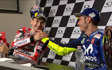 "Una scelta coraggiosa quella di andare nella tana del ‘lupo’ Marquez? Eh… Non lo so", ha sussurrato Vale che è anche tornato sulla gara del Mugello, conclusa sul podio alle spalle delle due Ducati ufficiali: "E' sempre un momento speciale della stagione. Salire sul podio è bello, ma lì è diverso. Le Ducati stanno andando veramente forte, Dovizioso e ora anche Lorenzo che ha fatto una gara fantastica".