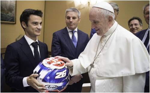 Il Papa ha incontrato i piloti di MotoGP Marc Marquez e Dani Pedrosa della Honda, Danilo Petrucci e Jack Miller della Ducati Pramac, Andrea Iannone della Suzuki, Grande emozione per tutti, compresi i team principali delle varie squadre