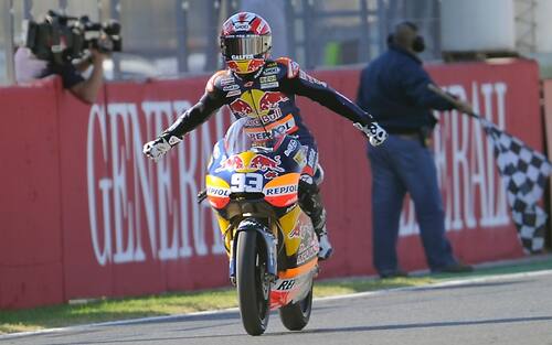 Marquez conquista subito il Mondiale alla sua prima stagione in MotoGP, vincendo 6 gare e totalizzando 334 punti -