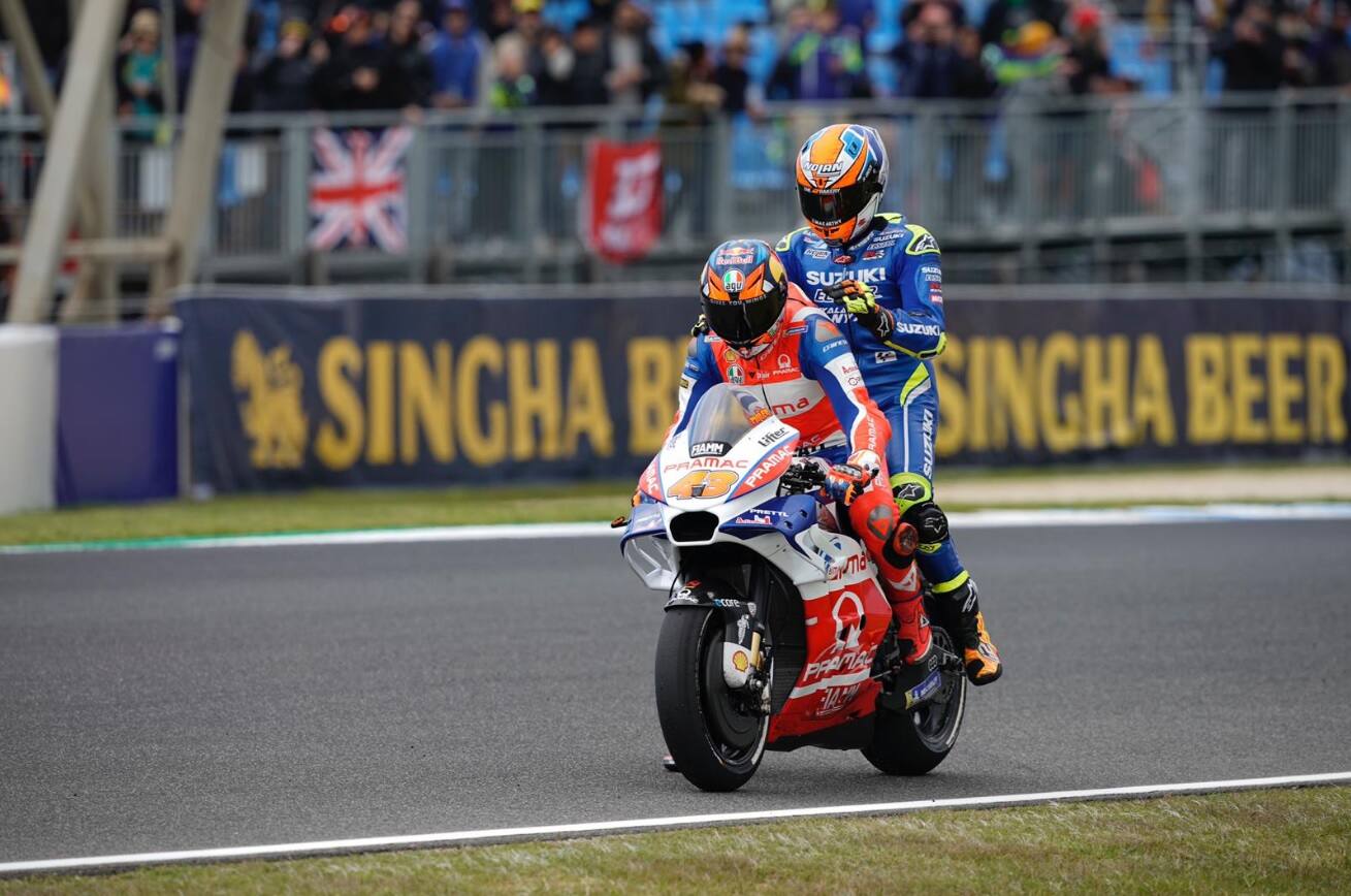 Vedere due piloti in sella a una MotoGP fa uno strano effetto. Siamo abituati a vedere quelle moto sfrecciare sul rettilineo, piegate all'estremo in curva. Vederle con due piloti sopra ci fa sorridere, ci fa pensare allo scooter che usiamo ogni giorno per andare in giro con un amico o con il proprio partner. Era già capitato di vedere un pilota che aiuta un collega rimasto a piedi, concedendo un passaggio fino ai box. Ma quello che è successo nel corso delle terze Libere in Australia è ancora più divertente. Alex Rins, dopo essersi fermato a causa di un problema alla sua Suzuki, si posiziona a bordo pista e fa il gesto dell’autostop alzando il pollice della mano destra. In quel momento passa l’idolo di casa, l’australiano Jack Miller, che si ferma volentieri per dare un passaggio allo spagnolo. Rins trova a fatica spazio sulla Ducati di Miller (le MotoGP non hanno il sedile posteriore) e saluta divertito il pubblico di Phillip Island, quasi come fosse un giro d’onore, prima di rientrare al box.
