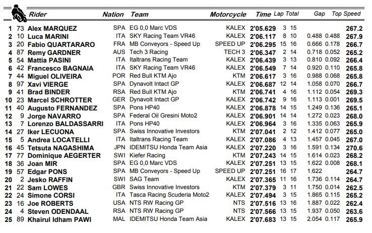 Moto2, GP Malesia: Marquez in pole, Bagnaia 6° davanti a Oliveira