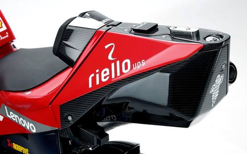 Impianto frenante Brembo, doppio disco anteriore in carbonio da 340mm con pinze a quattro pistoncini. Disco posteriore singolo in acciaio con pinza a due pistoncini. Pneumatici: Michelin, su cerchi anteriore e posteriore Ø17"