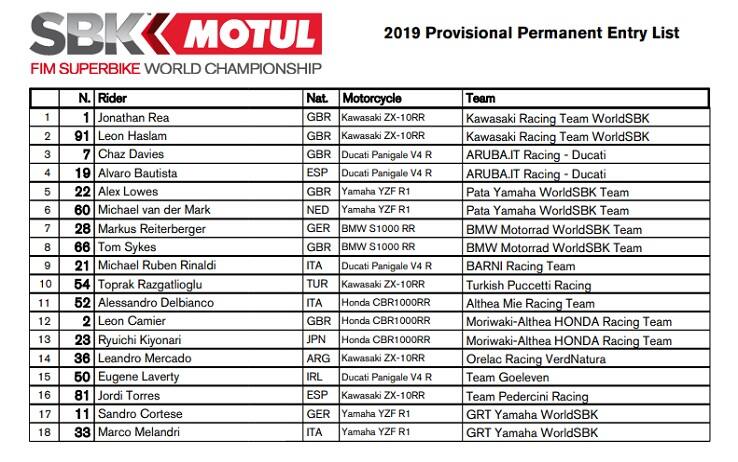 Passiamo in rassegna la entry list del World Superbike 2019 con cinque case costruttrici (Kawasaki, Ducati, Yamaha, BMW, Honda) che hanno confermato la loro presenza, rafforzando l’impegno e gli investimenti nel mondiale delle derivate dalla serie.