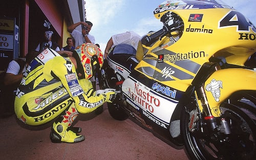 Non solo: Valentino aveva nel retro delle tacche per ricaricare l'energia, come un apparecchio elettronico. Segno che quando la tensione sale, il pesarese si carica -