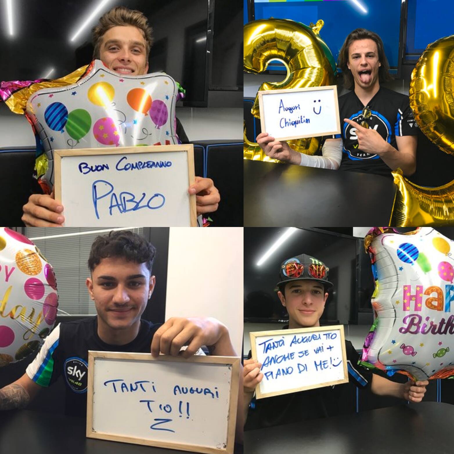 Lo chiamano molto affettuosamente "chiquitin" che in spagnolo è "piccolino" ed in maniera ancora più confidenziale "tio" (zio). Ed è tutto dire, perchè il "tio" è il loro boss, Pablo Nieto, il Team Manager dello Sky Racing Team VR46. Oggi è il suo compleanno e i suoi ragazzi gli hanno fatto gli auguri a suon di lavagna e palloncini ed un pensiero speciale. "Siamo cresciuti tantissimo con Pablo - racconta Luca Marini - è un bravo Team Manager, ci cura moltissimo e ci permette di avere gli strumenti giusti per esprimerci al meglio in moto. E’ una gran persona dentro ma soprattutto fuori dalla pista. Gli vogliamo bene”. L'esordio di questi ragazzi al Motomondiale è targato Pablo Nieto, come dimenticarlo: "Ho conosciuto il Campionato del Mondo con Pablo - dice Bulega - e considerate gare, trasferte, viaggi oltreoceano, con lui ed il resto della squadra passo molto tempo, lui ha creato un clima unico e familiare ed è fondamemntale il suo supporto in pista, da ex pilota".
