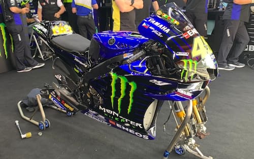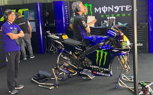 Lavori in corso al box Yamaha: sulla M1 su Rossi nel secondo turno di libere è stato montato un nuovo scarico -