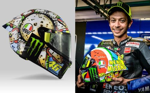Rossi non smette di stupire: è diventato un esperto nel realizzare caschi originali, in collaborazione con il designer Aldo Drudi. Ecco accontentati i fan che aspettavano la nuova creazione per il GP di San Marino. Il "Dottore" ha scelto un nuovo casco dal titolo "Menù Misano": da una parte sono raffigurate le piadine preferite dal pilota Yamaha, dall'altra è presente un cocomero
