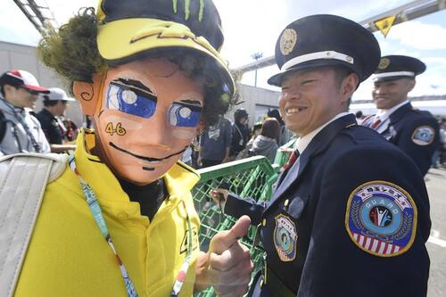 Una caricatura del "Dottore". Un tifoso giapponese travestito da Valentino Rossi si aggirava nei pressi del circuito di Motegi, tra i sorrisi compiaciuti delle guardie