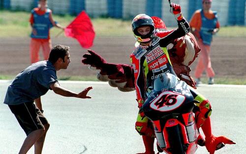 "Una delle mie gag preferite", ha detto Vale di quella volta a Jerez nel 1999, quando a fine gara non rientrò direttamente ai box ma si fiondò al bagno dei commissari di gara: "Mi scappava per davvero!", ha detto poi Rossi -