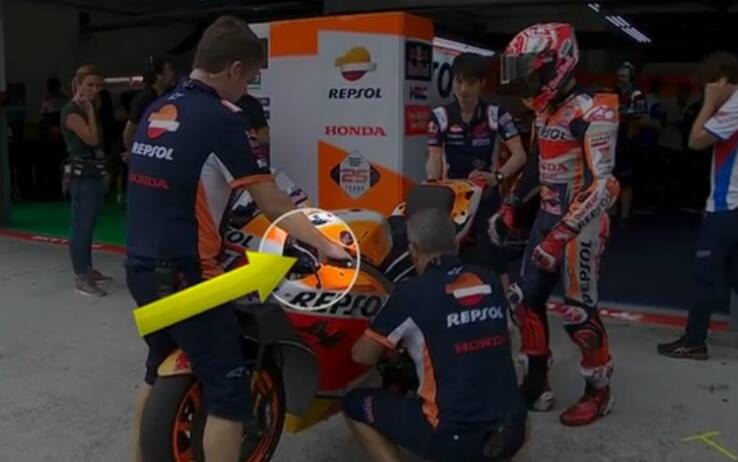 Nelle Libere 2 di Sepang, Marquez ha provato una Honda con due leve sulla sinistra: una è la classica leva della frizione, l'altra è una leva che aziona il freno posteriore (come succede negli scooter). Una novità che ha due obiettivi: migliorare la sensibilità in frenata, avere una maggiore libertà di movimento del piede e della gamba in curva