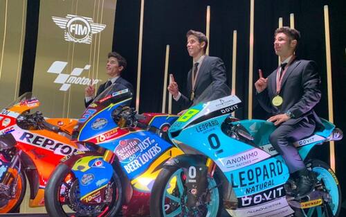 Sempre in Moto3, grazie al successo di Lorenzo Dalla Porta, è stata premiata la Leopard Racing come migliore casa produttrice