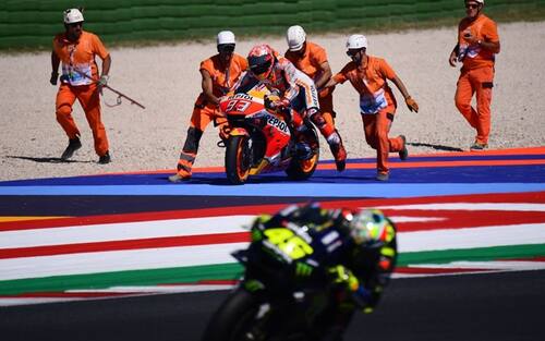 In gara sarà poi un trionfo di Marc Marquez che vince davanti a Quartararo e Viñales. Per Valentino una deludente quarta posizione