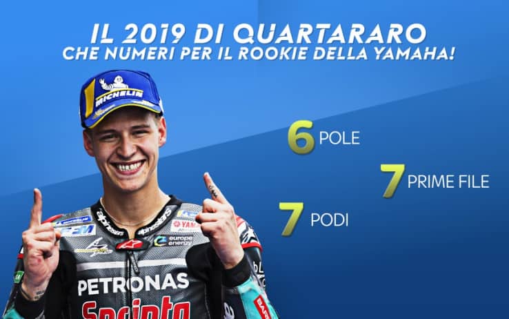Il grande salto arriva nel 2019. In pochi credono nelle sue possibilità, eppure Quartararo si trasforma in una bomba. Nel 2019 Quartararo corre per il team Petronas Yamaha, compagno di squadra di Franco Morbidelli. Ad Jerez de la Frontera conquista la sua prima pole position, che lo rende, a 20 anni e 14 giorni, il più giovane poleman nella storia della classe.